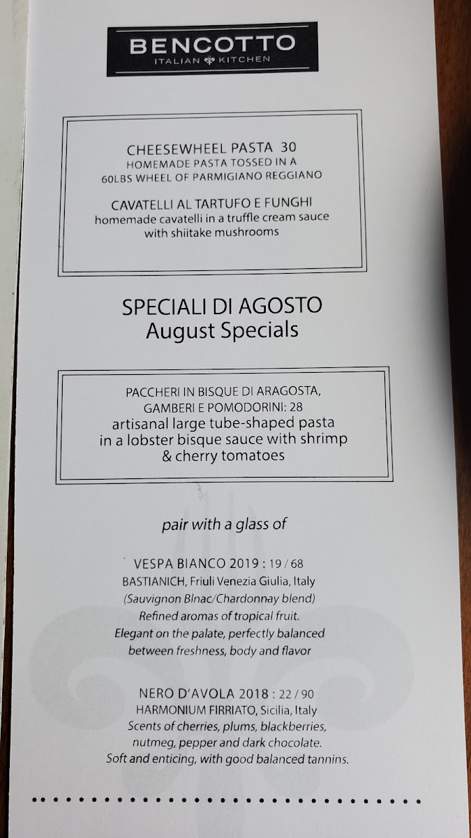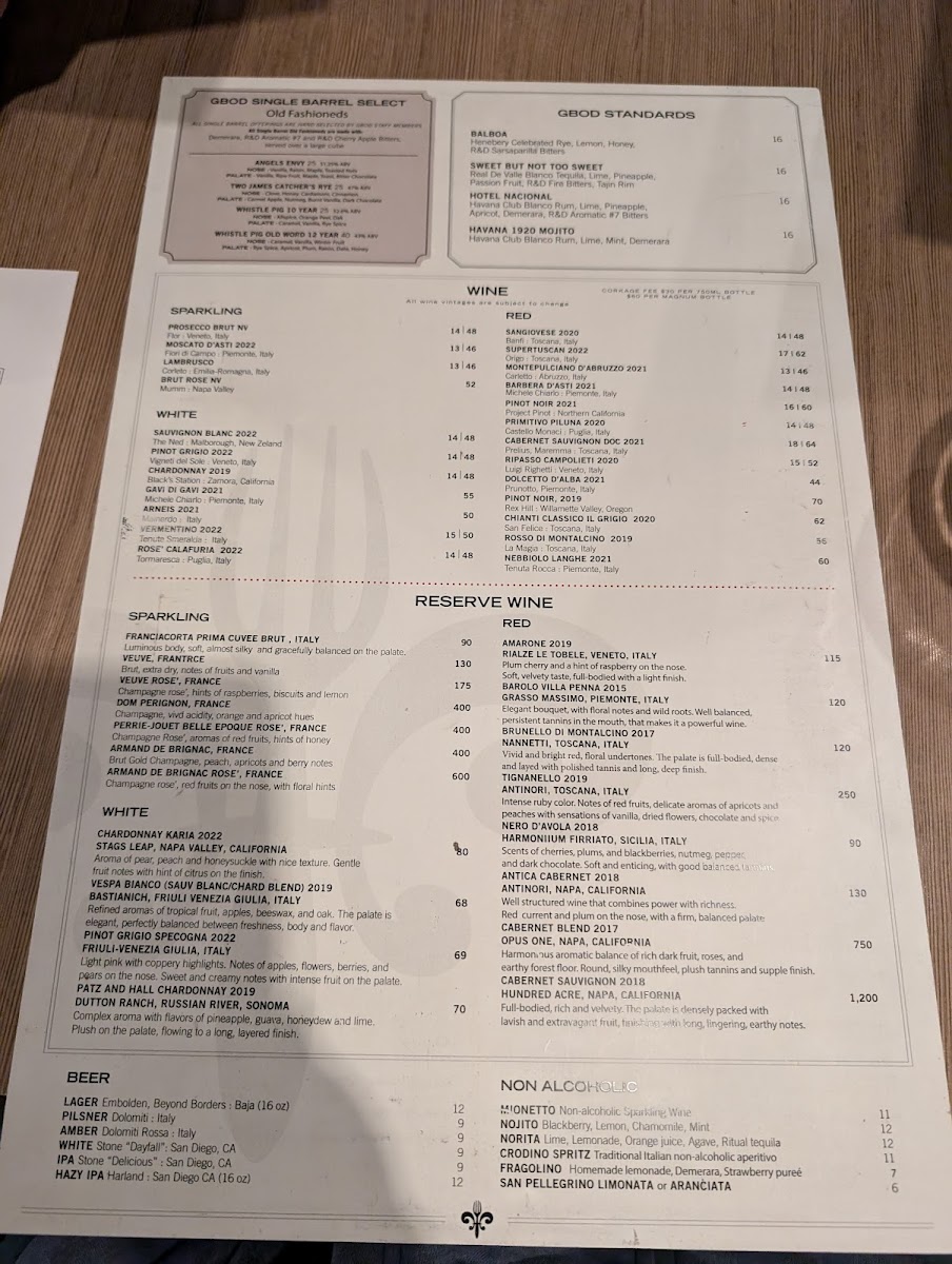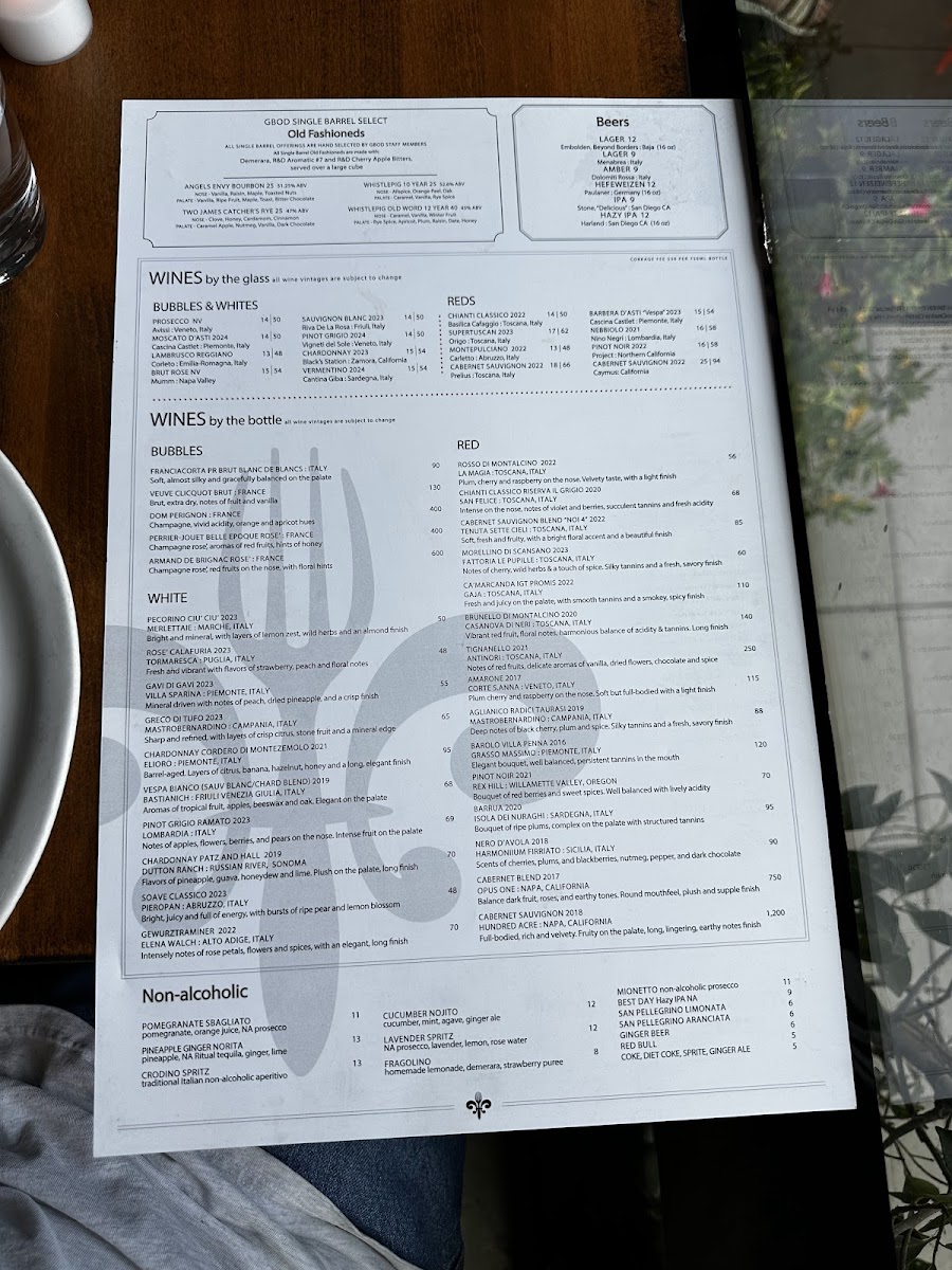 Nestled in the heart of San Diego, Bencotto Menu offers a delightful selection of authentic Italian dishes that are sure to please every palate. From perfectly crafted pastas to mouthwatering risottos, each dish is made with fresh, high-quality ingredients. With a modern twist on traditional recipes, Bencotto takes you on a culinary journey straight to Italy, right from the comfort of their welcoming dining space. Whether you're in the mood for a classic bowl of spaghetti or an adventurous take on Italian cuisine, the menu has something to satisfy every craving. Don't forget to pair your meal with one of their expertly chosen wines, making every visit a truly memorable experience.
